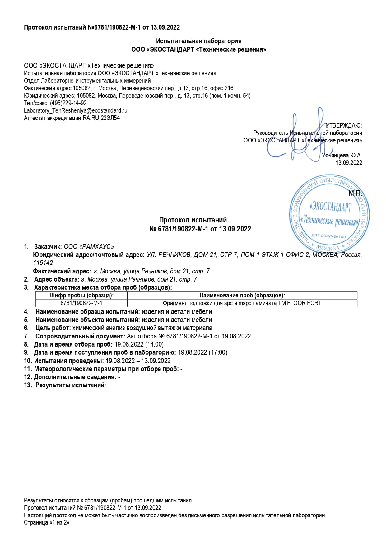 Экологическая экспертиза подложки Floor Fort